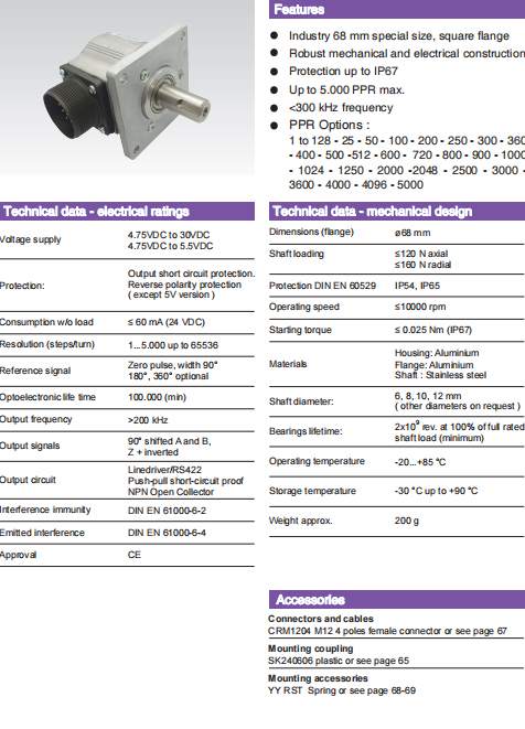 | ○ | 輸出頻率:>200 kHz | ○ | 輸出信號(hào):90° 移相 A、B、Z ,+ 取反 | |||